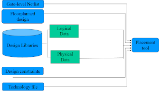 Placement is the process of placing standard cells in the rows created at floorplanning stage. The goal is to minimize the total area and interconnect cost. The quality of routing is highly determined by the placement. Placement becomes very critical in Deep Sub Micron technologies.The inputs for the placement stage are Gate-level Netlist, Floorplanned design, Design libraries (Physical and Logical libraries), Design Constraints, Technology file.